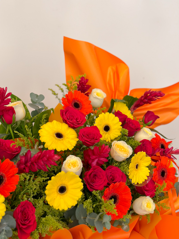 – Mixed with Ginger Flower, Yellow Peacock, Snow White and Eucalyptus Leaves.