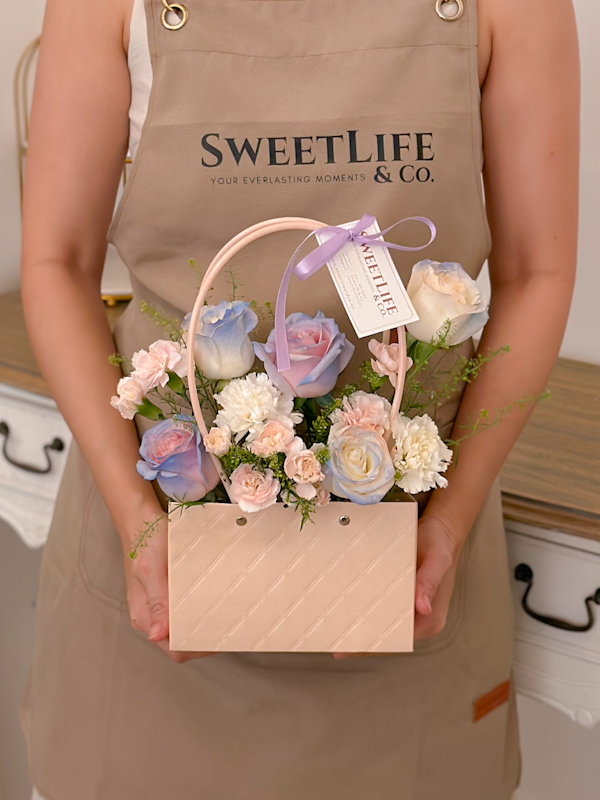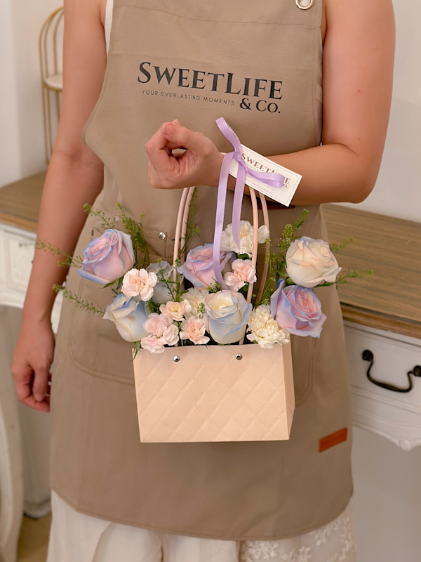 Tags: Flower Bag, Flower Bag Bouquet, Pink Roses Flower Bag