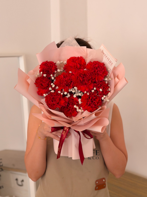 – Mixed with Baby Breath and Eucalyptus Leaves